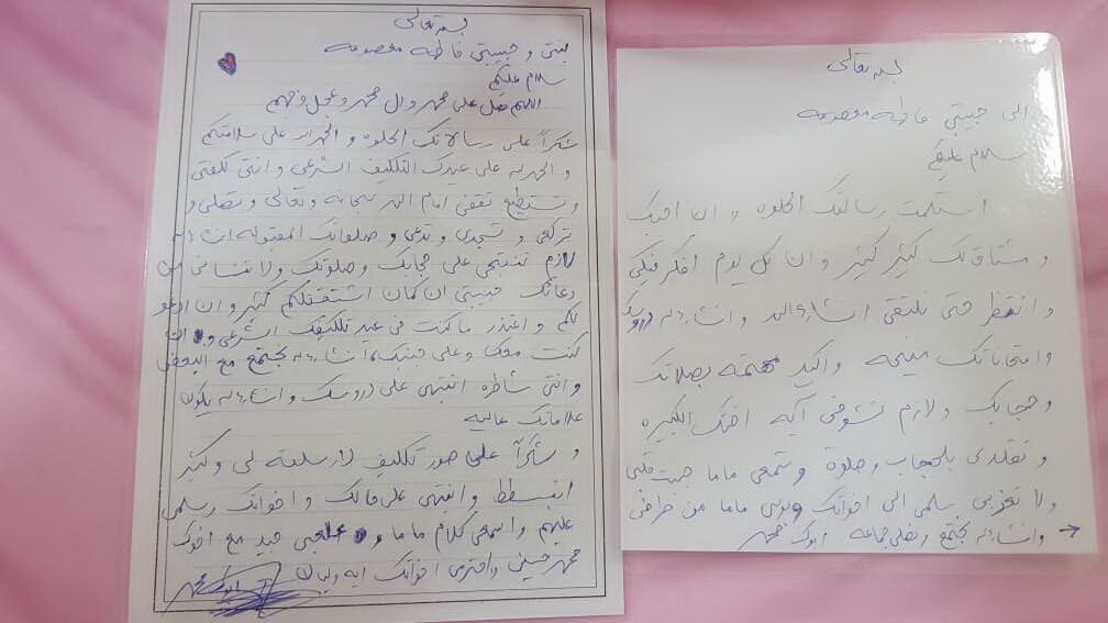 برای دخترم در نامه ای نوشتند که عذر می‌خواهم که نتوانستم در جشن تکلیف شرعی شما حضور داشته باشم، اما شما من را دعا کن و خوشحالم کردی که عکس تکلیف های درسی‌ات را برای من فرستادی به حرف مادرت گوش بده و به خواهران بزرگترت احترام بگذار..